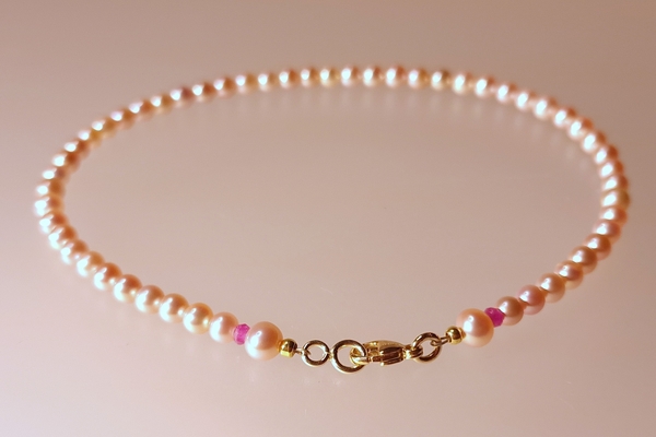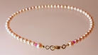 Armband van: Roze parels Gouden karabijn sluiting Robijn