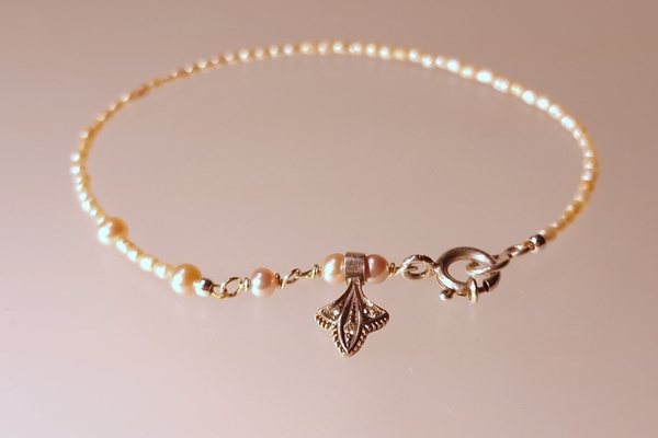 Armband van: Roze parels Zilveren veerring Zilvere hanger met diamant