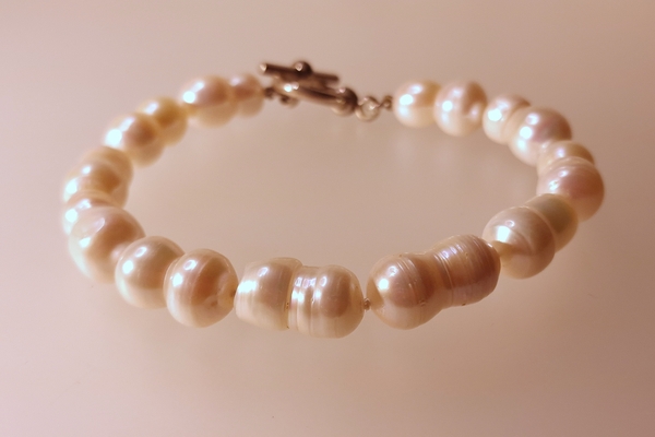 Armband van: Witte twin parels Zilveren kapittel sluiting