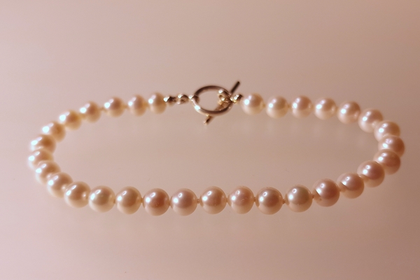 Armband van: Witte ronde parels Zilveren kapittel sluiting