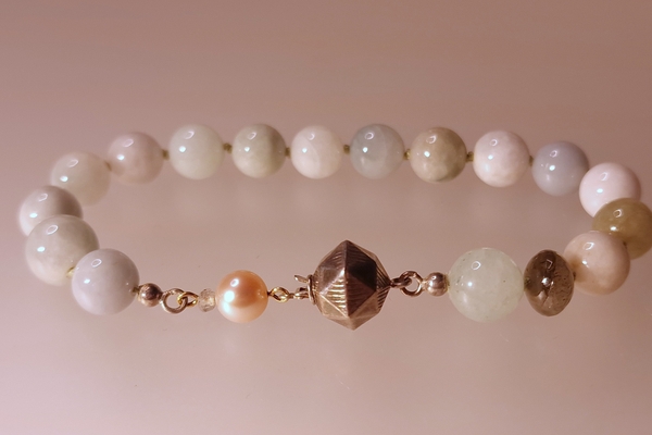 Armband van: Jade labradoriet roze parel Zilveren paston sluiting