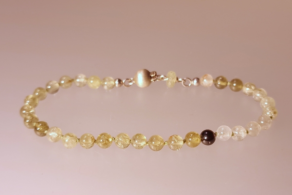 Armband van: Groen granaat Zilveren matte bol sluiting