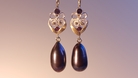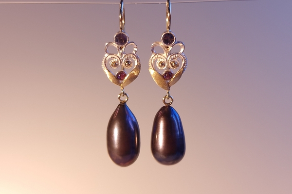 Zwarte parel druppel ioliet Geelgoud en zilver